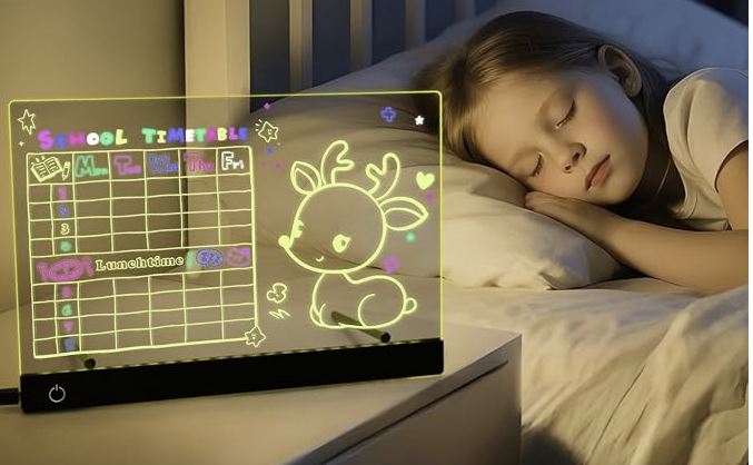 La Pizarra LED Mágica 20x30 cm es el juguete creativo favorito de niños y familias para estas fiestas. Un panel acrílico transparente que cobra vida con luces LED de colores, permitiendo dibujar, escribir y decorar con un brillo único.